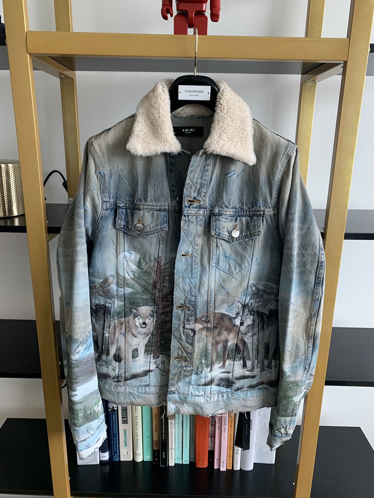 Amiri 19FW Shearling Collar Wolves Denim Jacket Size M Grailed