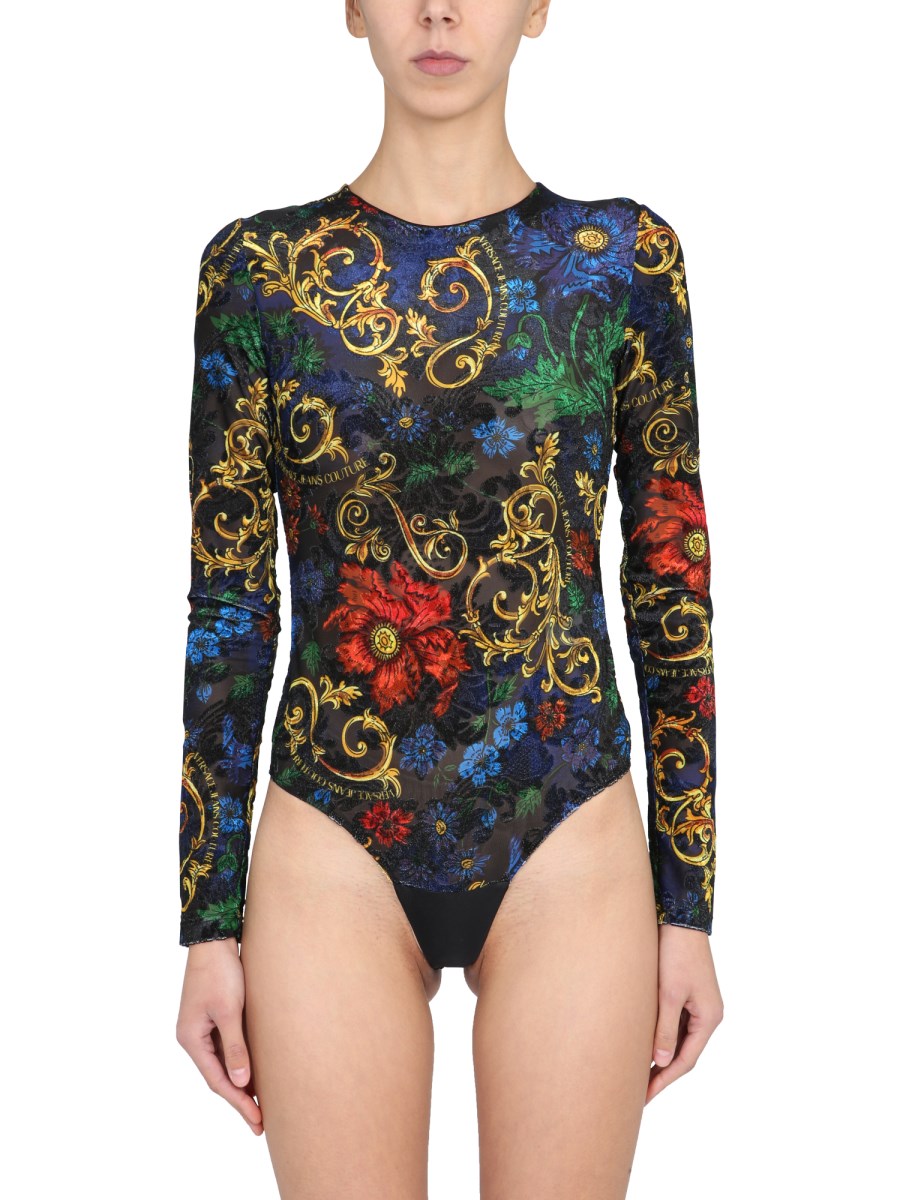 VERSACE JEANS COUTURE LONG SLEEVES BODYSUIT WITH FLORA BAROQUE