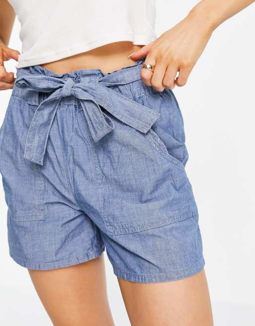 Chambray clearance tie shorts, Explore More Chambray Paper Bag Waist Shorts for Women Billabong clearance