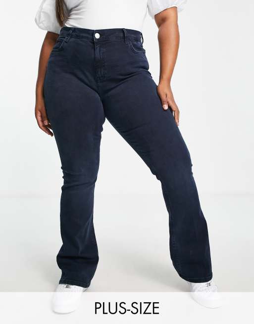 Mid rise plus clearance size jeans, River Island Plus mid rise flare jean in dark blue wash clearance
