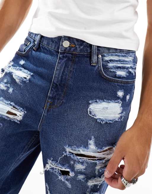 ASOS DESIGN baggy jeans with extreme rips in dark wash blue