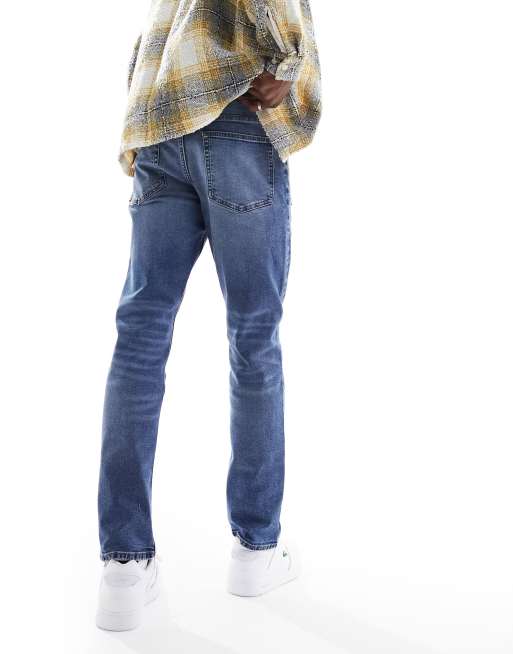 ASOS DESIGN stretch slim jeans with rips in mid blue ASOS