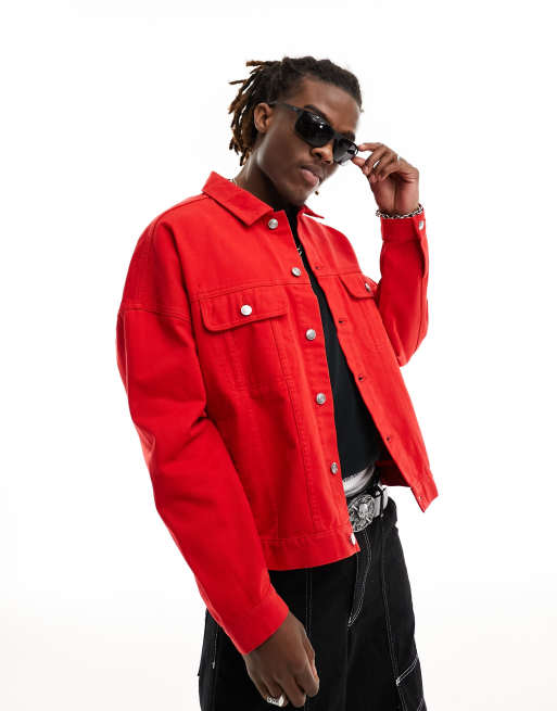 Acid Wash Red Denim Jacket Oversized Denim Jacket Punk Jacket