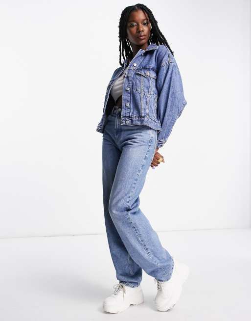 Pull&bear oversized denim clearance jacket, Pull Bear oversized denim jacket in mid blue clearance