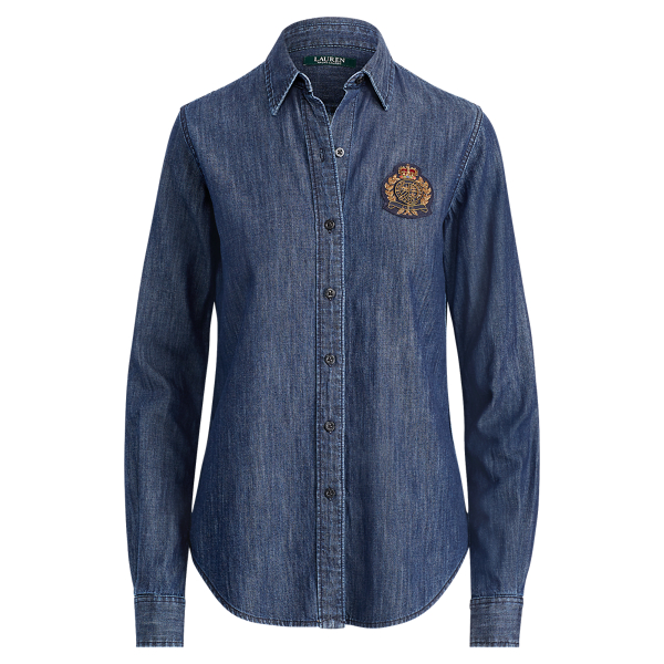 Crest Patch Denim Shirt for Women Ralph Lauren GY