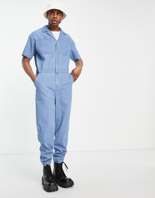 ASOS DESIGN lightweight denim tailored boilersuit in blue ASOS