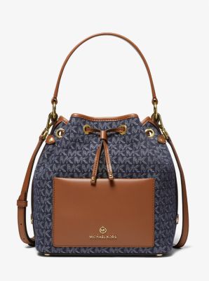 Smith Medium Denim Logo Jacquard Bucket Bag Michael Kors