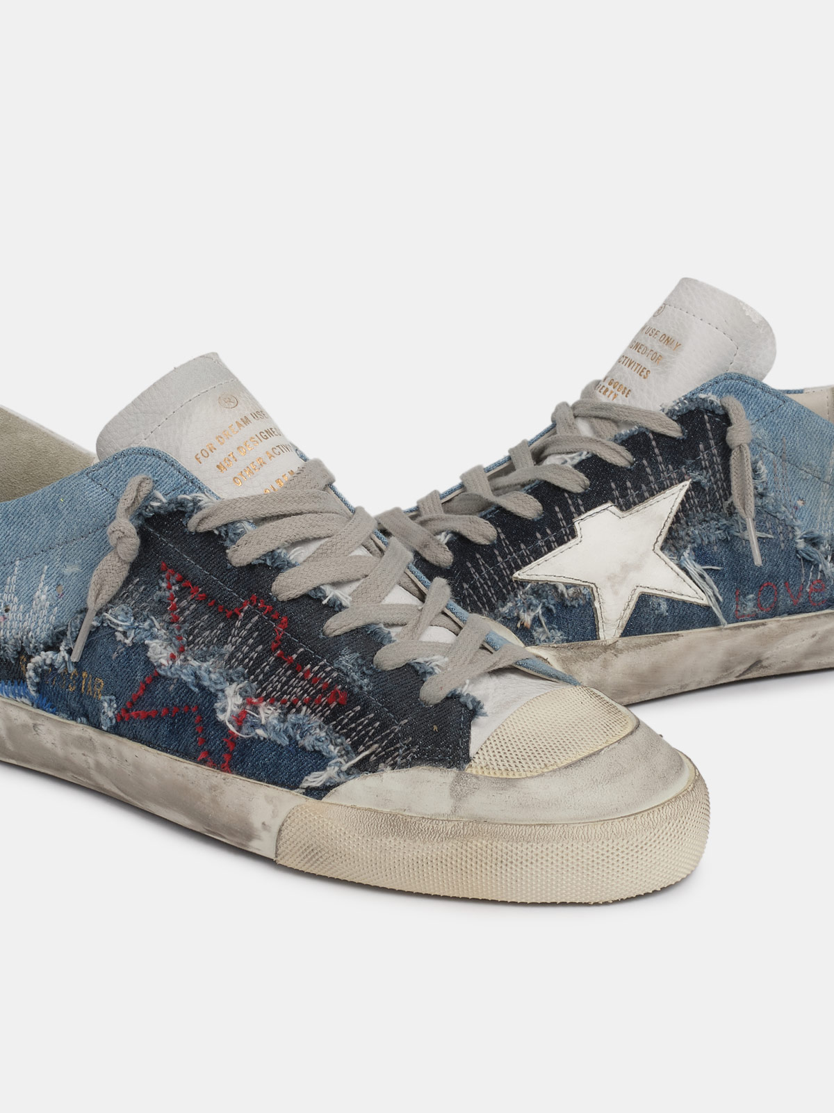 Golden goose denim clearance superstar, Women s Super Star sneakers with gold foxing Golden Goose clearance