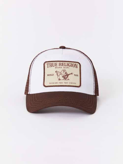 TRUE RELIGION Hat Distressed Buddha Logo Embroidered TRBJ Trucker