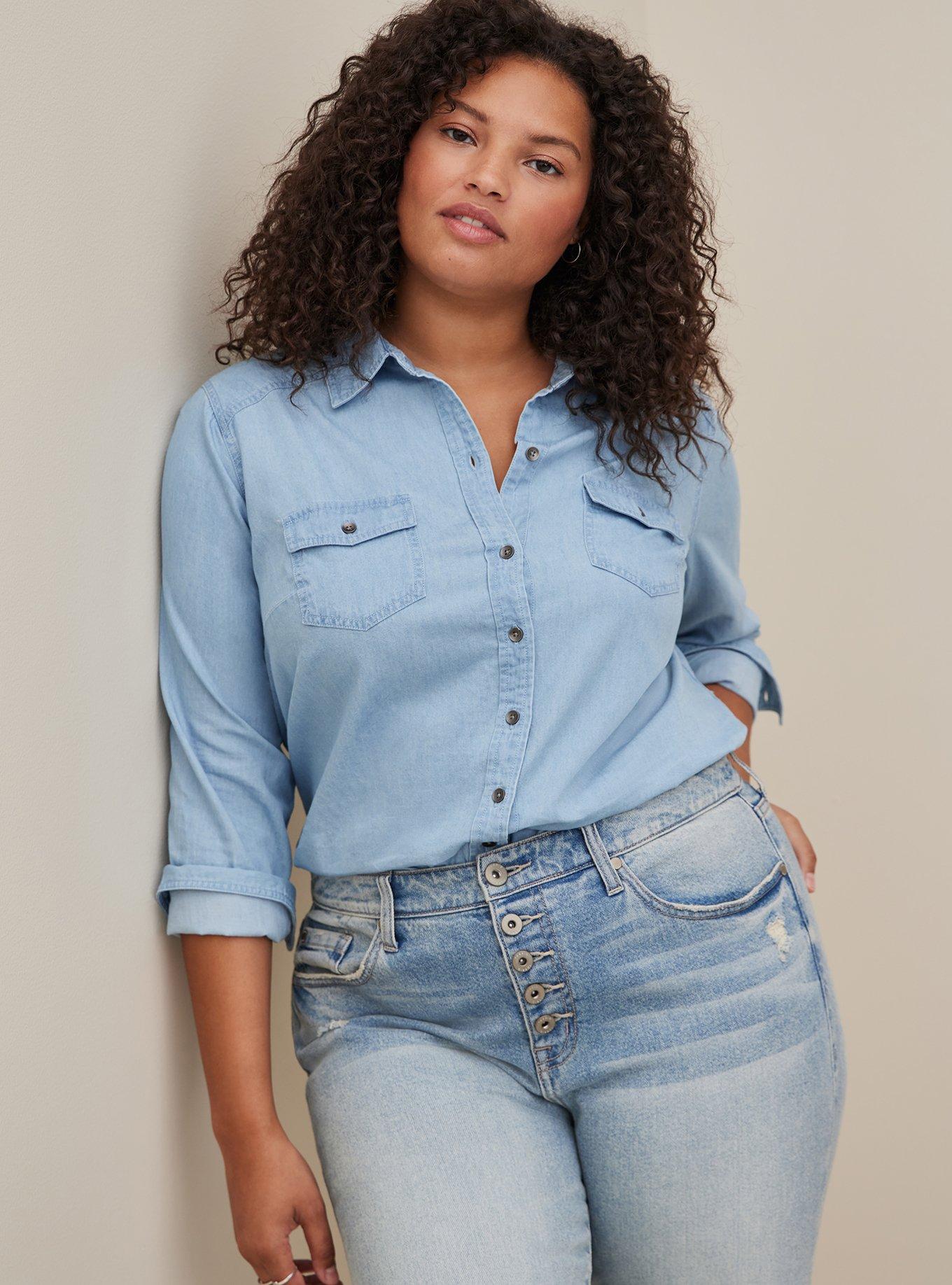 TORRID Taylor Medium Wash Denim Button Down Shirt CoolSprings