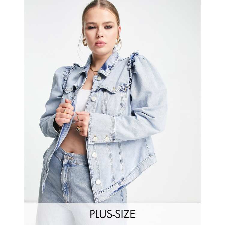 Plus Puff Sleeve Peplum Denim Jacket Denim jacket Trendy plus