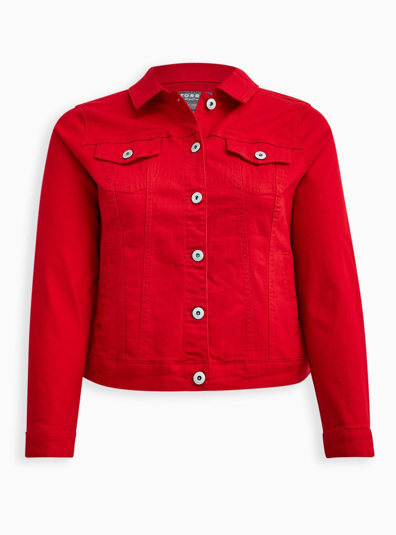 Plus Size Ruby Red Denim Trucker Jacket Torrid