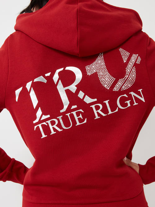 True Religion Women s Tr Alumni Classic Zip Hoodie Dark Burgandy