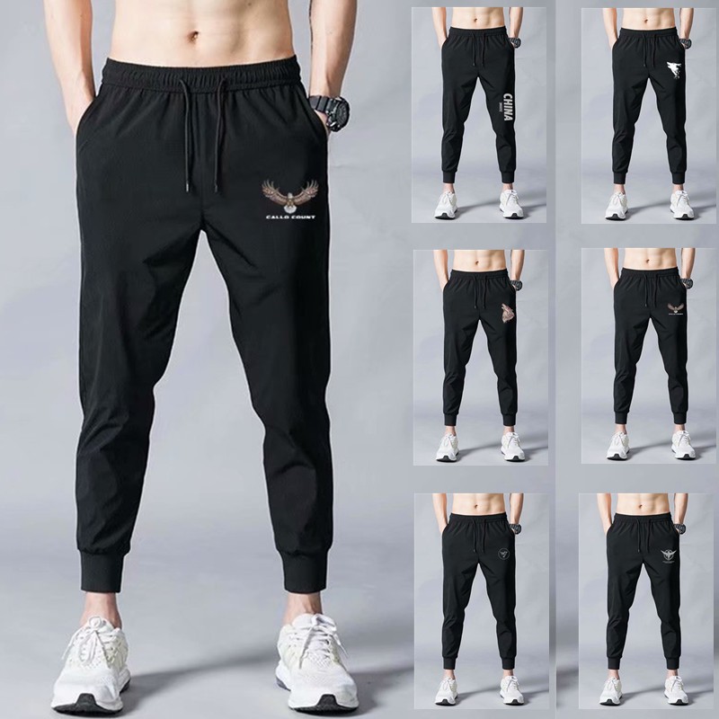 Men s Ice Silk Trousers Solid Color Mid waist Loose Breathable Stra