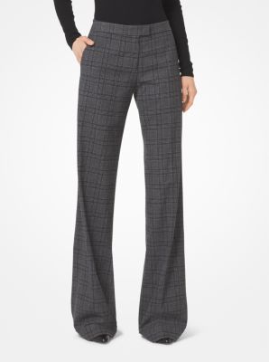 Plaid Stretch Wool Wide Leg Trousers Michael Kors