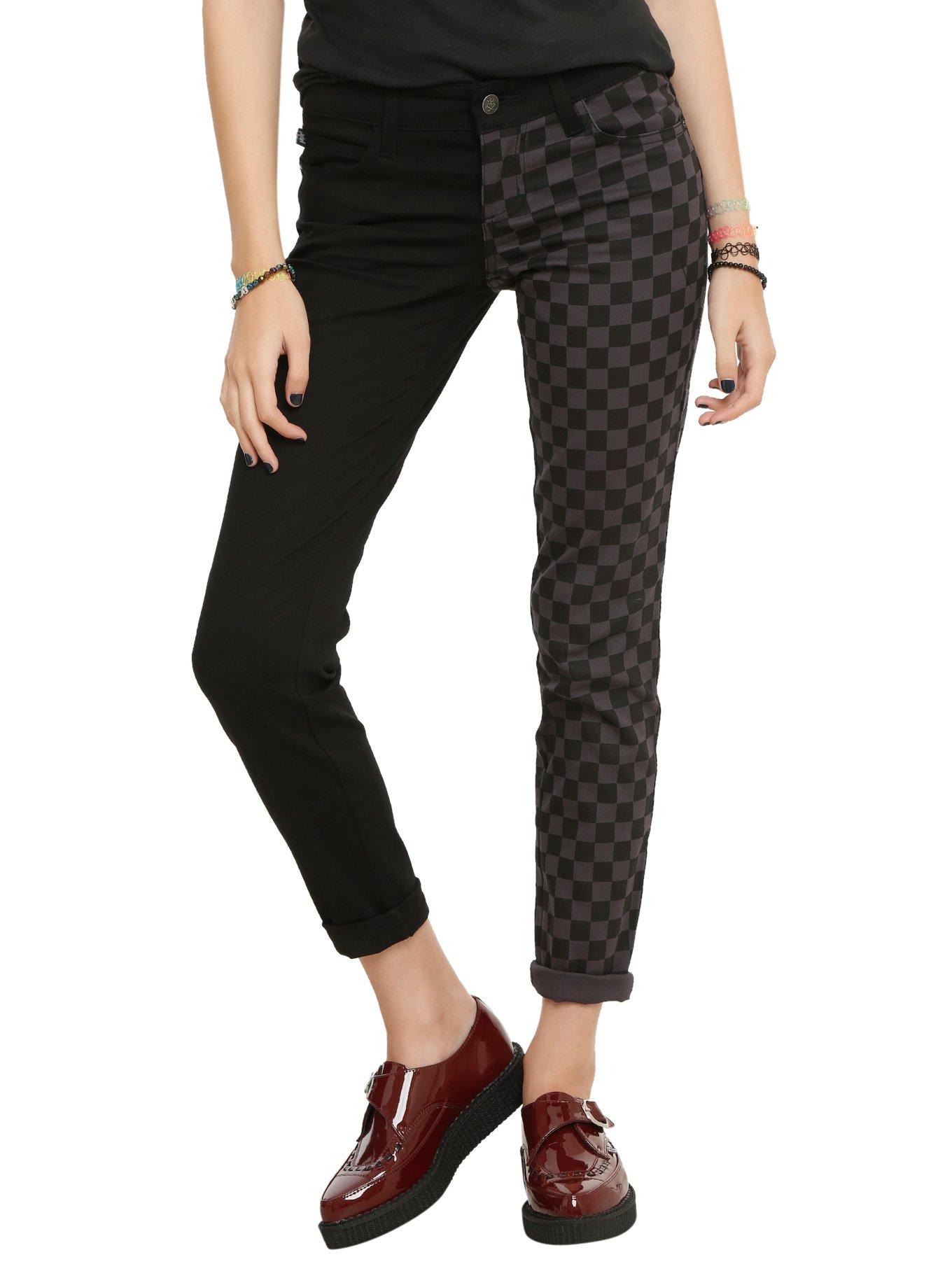Royal Bones By Tripp Black Grey Checkered Split Leg Skinny Jeans