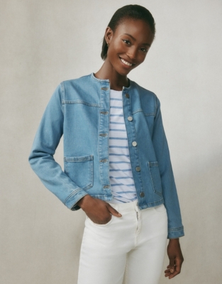Collarless denim jacket clearance uk