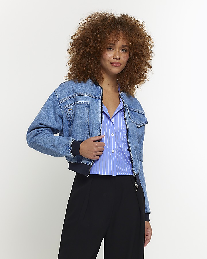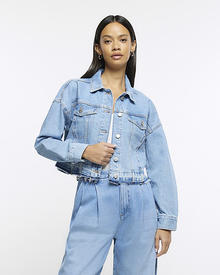 Cropped denim jacket clearance river island, River Island Womens Denim Jacket Plus Size Black Pearl Cropped clearance