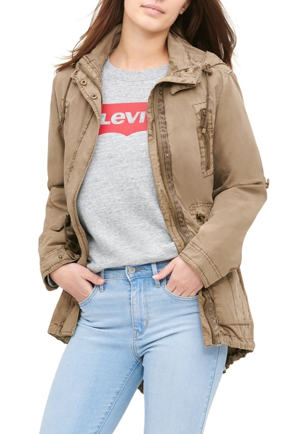 Levi's parachute hooded clearance cotton utility jacket, Women Parachute Hooded Utility Jacket Army Green clearance