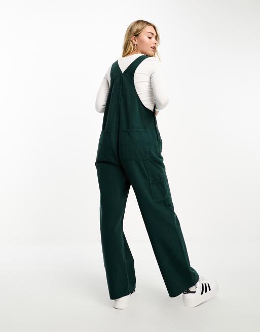ASOS DESIGN Tall original corduroy dungaree in dark green