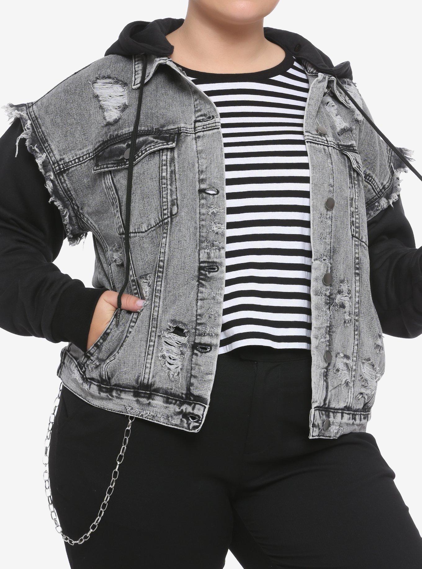 Hot topic jean clearance jacket, Black Washed Removable Hood Denim Vest clearance