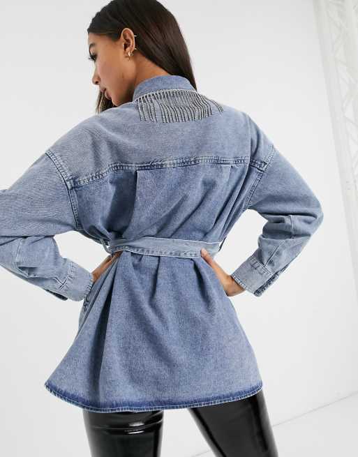 ASOS DESIGN oversized denim shirt with diamante fringe collar