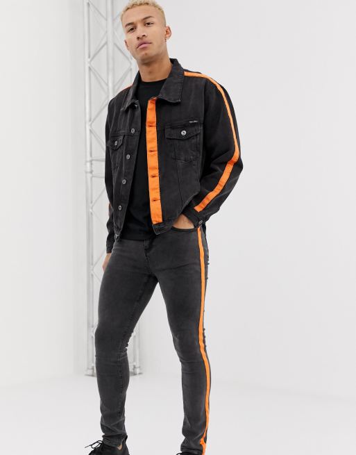 Liquor N Poker Denim Jacket With Orange Stripe in Black for Men Lyst