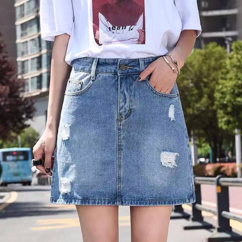 Qoo10 Ladies Retro Biker Style Torn Tattered Denim Belt Skirt