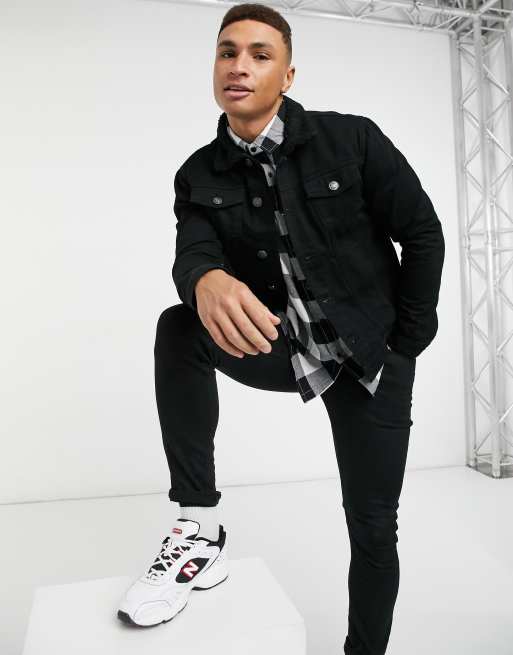 Brave Soul denim jacket with borg collar in black ASOS