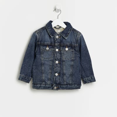 Mini Boys Blue Denim Borg Collar Jacket River Island