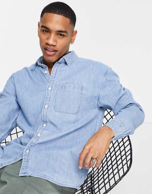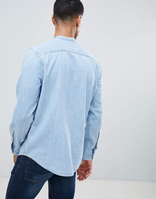 Abercrombie mens denim clearance shirt, Abercrombie Fitch banded collar denim shirt in light wash clearance