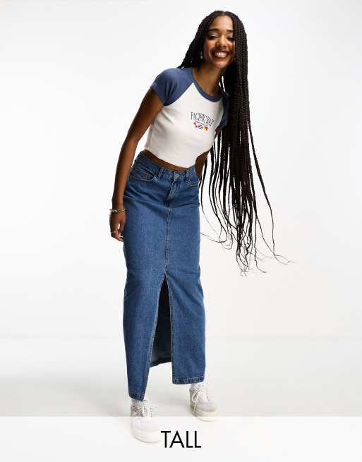 Vero Moda Tall column denim skirt in dark blue ASOS