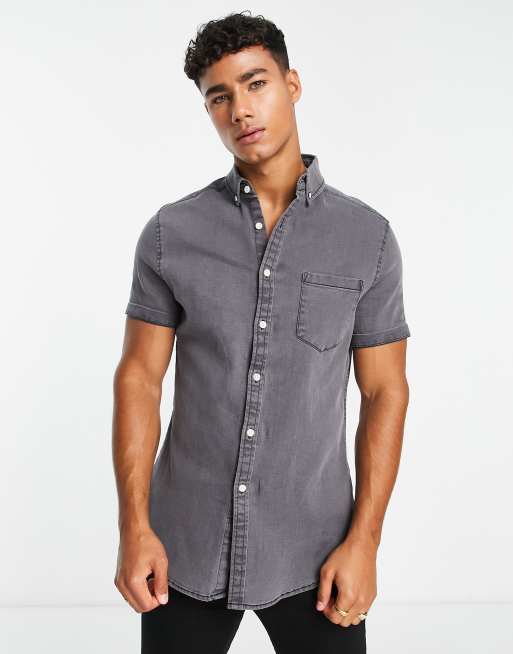 Denim clearance shirt asos, ASOS DESIGN skinny denim shirt in washed black clearance