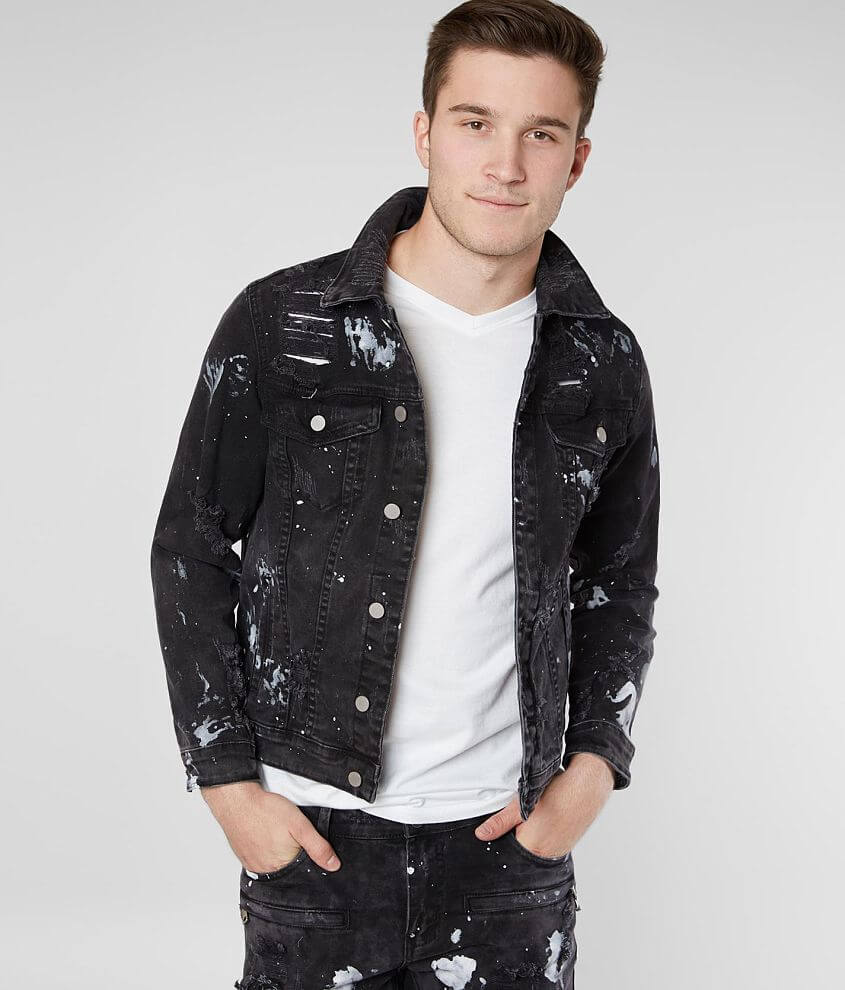 Black denim jacket clearance paint splatter