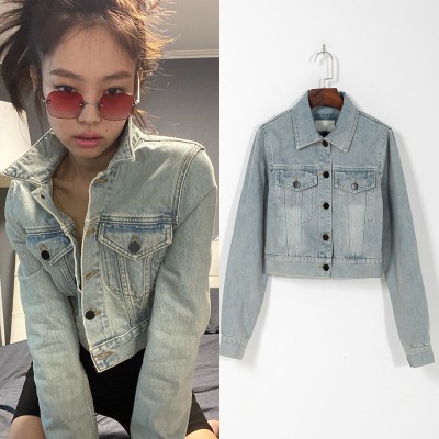 Korean Blackpink Jennie Vintage Denim Short Jacket Washed Old Retro Light Colored Women s Top