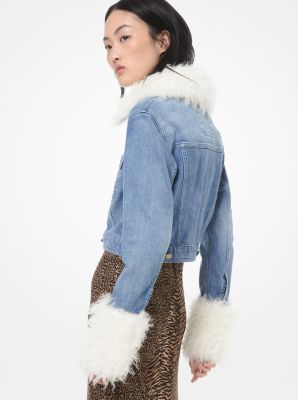 Michael Kors Women s Removable Collar Faux Fur Cotton Denim Jacket