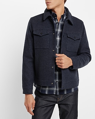 Navy Wool blend Trucker Jacket Express