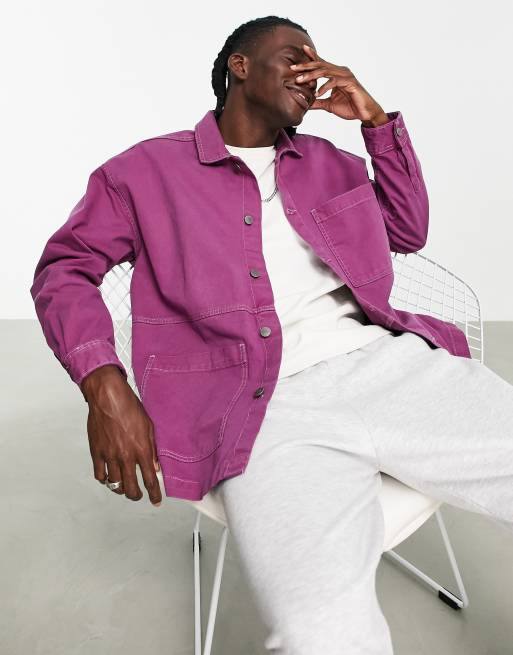 Denim jacket pink clearance men, Bershka denim jacket set in pink ASOS clearance