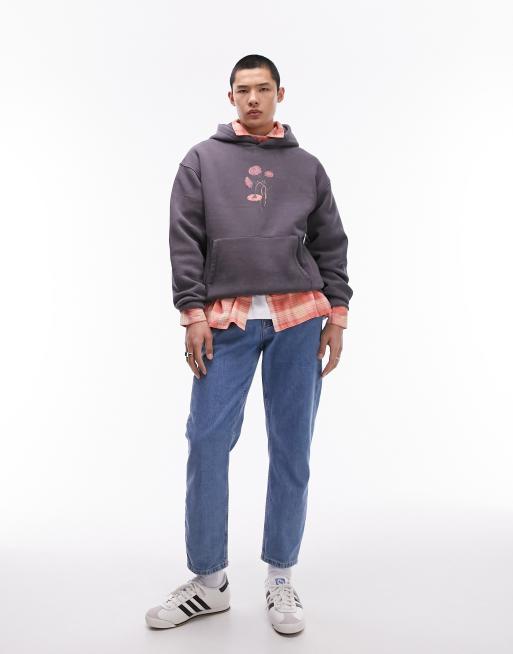 Topman oversized fit hoodie with front and back painted floral