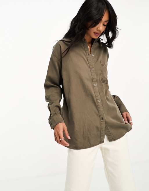 Khaki denim shirt clearance womens, Vila oversized denim shirt in khaki clearance