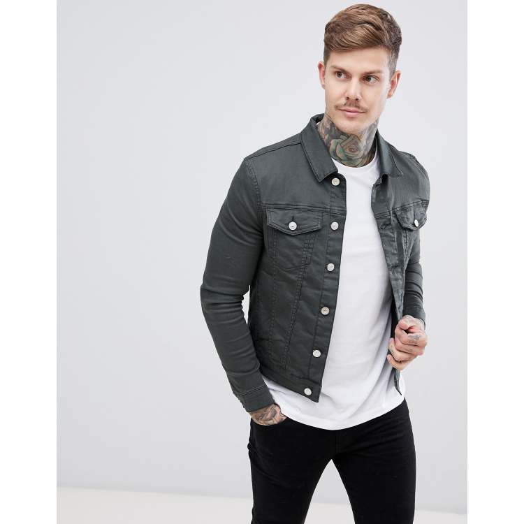 River Island Muscle Fit Denim Jacket in Green for Men Lyst UK