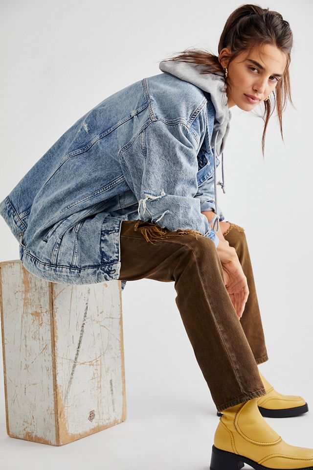 Free people hooded clearance denim jacket, Free People White Jean Jacket 2024 www.villaflaviogioia clearance