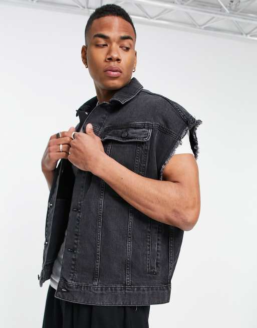 ASOS DESIGN sleeveless denim gilet jacket in black