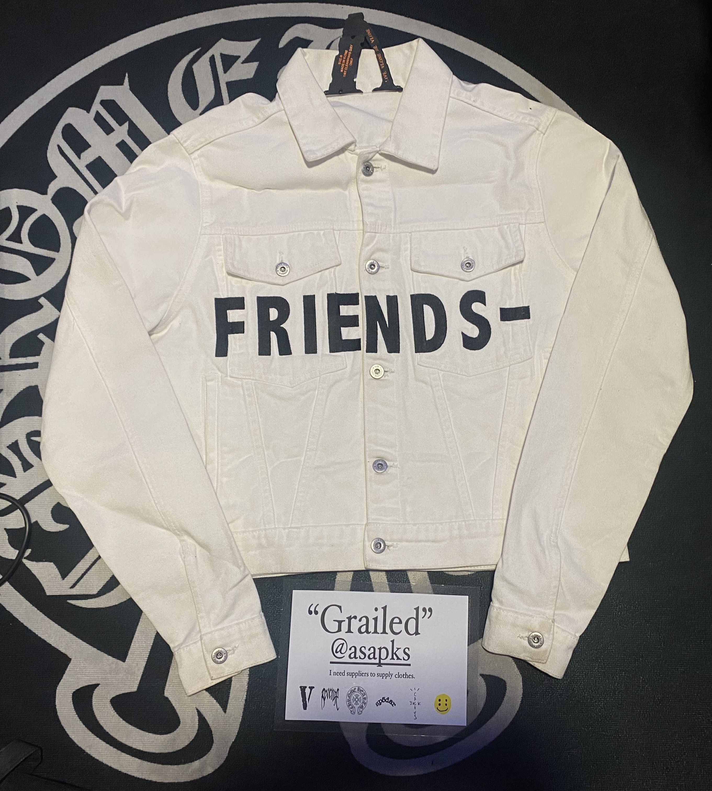 Vlone friends denim clearance jacket replica, Vlone M Vlone Friends Denim Jacket White Black Grailed clearance