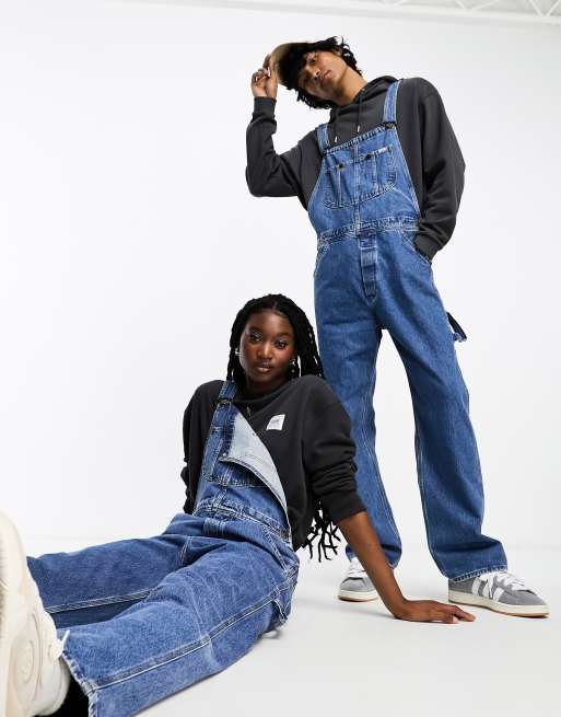 Lee unisex workwear capsule straight fit dungaree overalls in old time favourite mid wash