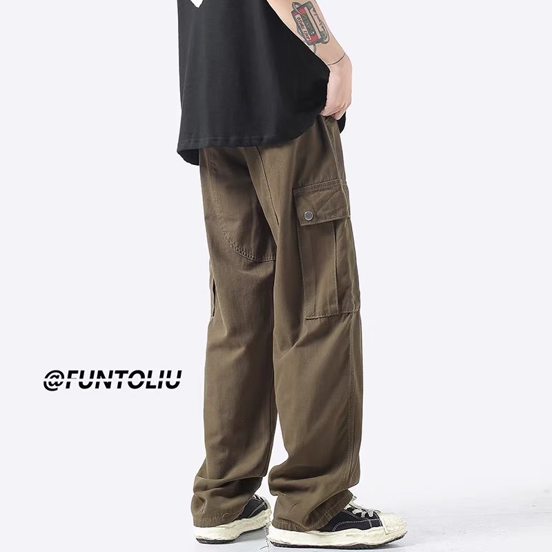 Mens straight leg clearance overalls, S 3XL Brown Overalls High Street Men s Casual Straight Loose clearance