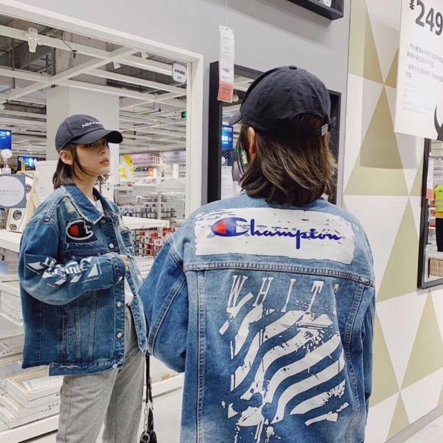 2019 champion x offwhite Japanese cardigan denim jacket Shopee