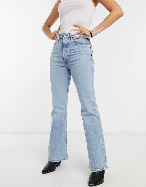 Levis ribcage flare clearance jeans, Levi s Ribcage flare jeans in light wash blue clearance