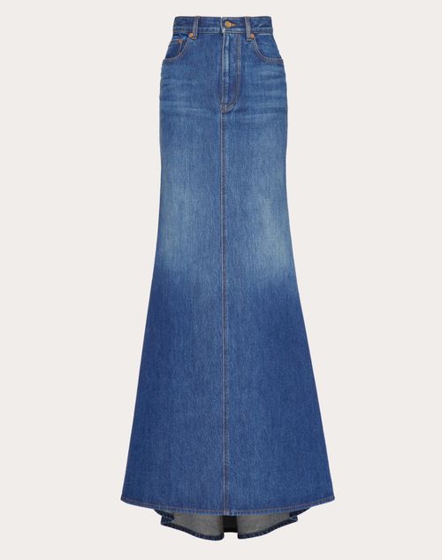 Long jeans skirts clearance online, Ripped edge long denim skirt W26 Blue Long denim skirt clearance