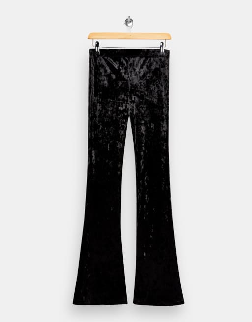 Topshop Womens 8 Black Crushed Velvet Flare Trousers Velour Bell